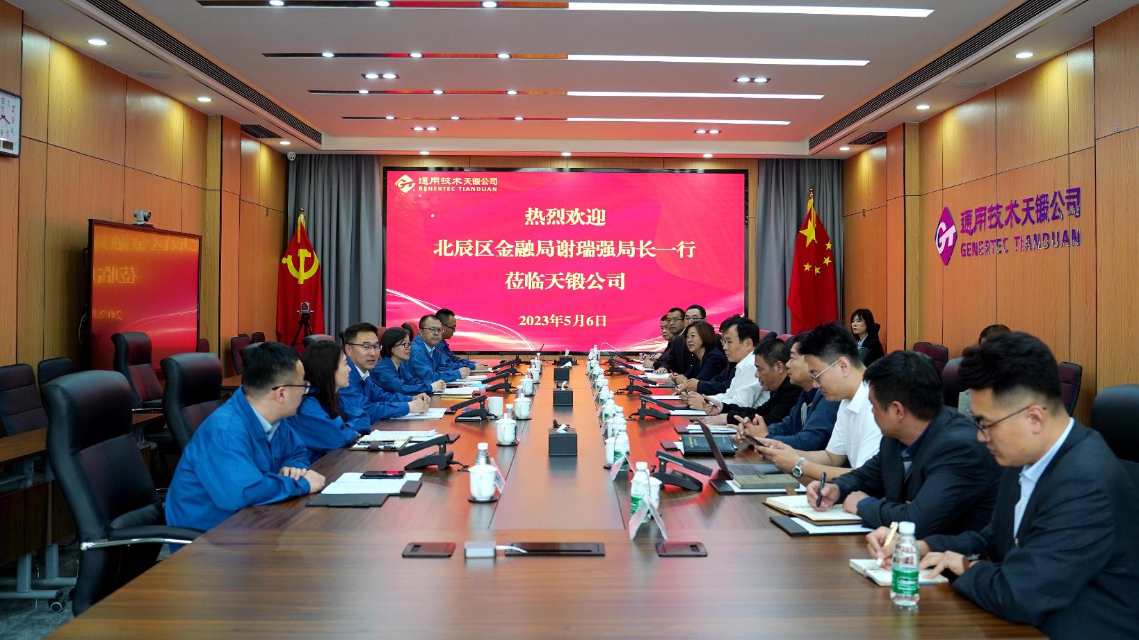 5月6日下午,北辰區(qū)金融局局長謝瑞強(qiáng)、副局長劉洪禹等領(lǐng)導(dǎo)一行來到天鍛公司開展調(diào)研服務(wù),公司領(lǐng)導(dǎo)劉國福、桂純及有關(guān)部門負(fù)責(zé)人參加座談交流。