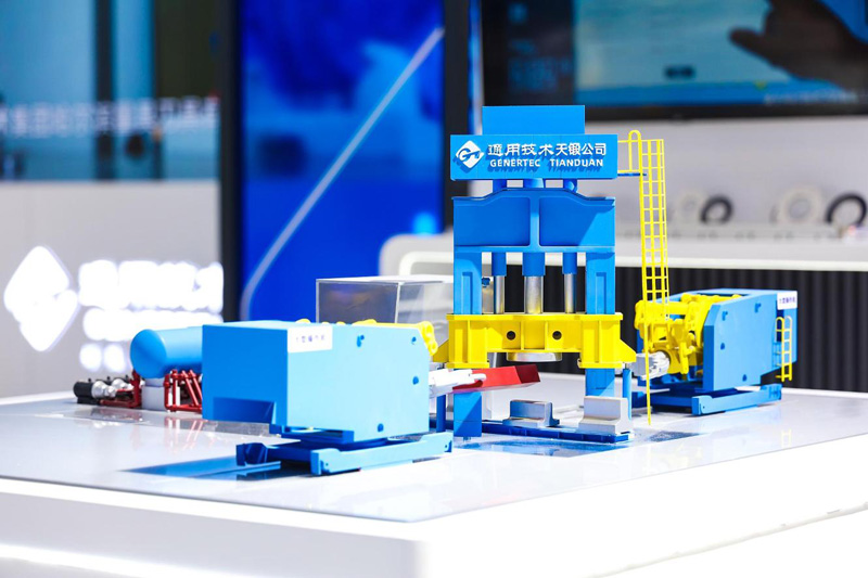 天鍛公司在此次展會上首次展出64000kN大型全伺服智能沖壓線、25000kN雙柱快鍛成套生產(chǎn)線裝備等重點(diǎn)產(chǎn)品仿真模型,積極展現(xiàn)公司在新能源汽車制造、新材料鍛造加工等領(lǐng)域的創(chuàng)新成果。