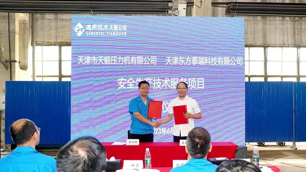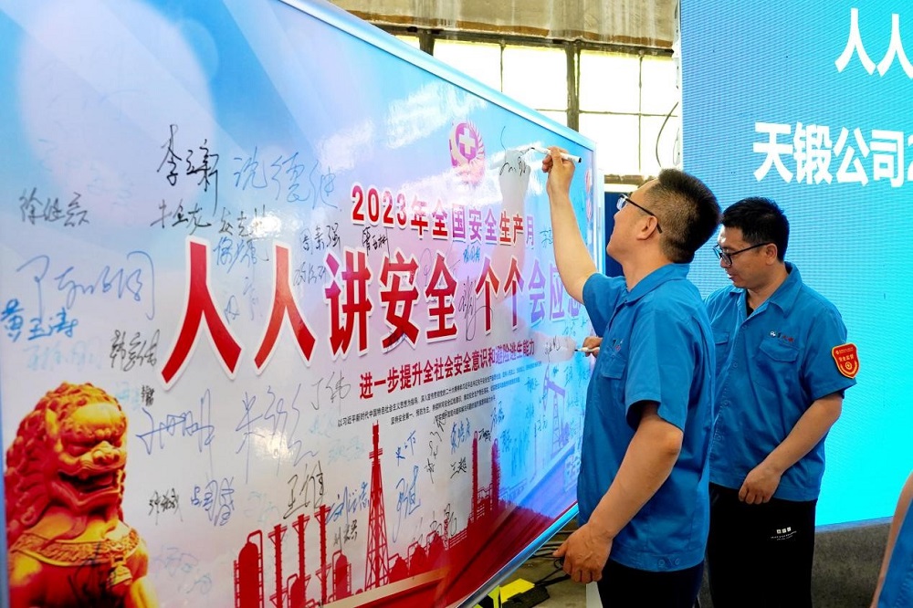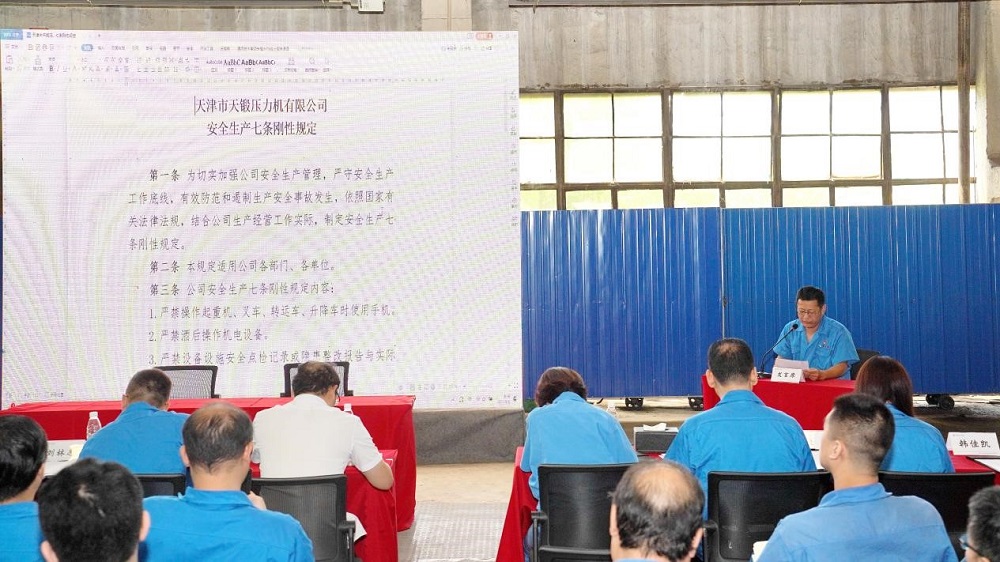 6月6日上午,天鍛公司在機(jī)加工車間舉行2023年“安全生產(chǎn)月”活動啟動大會。副總經(jīng)理張敬波主持會議,宣讀了天鍛公司2023年“安全生產(chǎn)月”活動總體實(shí)施方案和重大事故專項(xiàng)排查整治行動方案??偨?jīng)理劉林志宣讀了《天鍛公司安全生產(chǎn)七條剛性規(guī)定》,并代表公司與天津東方泰瑞科技有限公司簽署了安全生產(chǎn)咨詢服務(wù)合同。