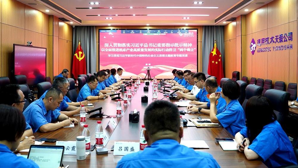 7月17日上午,集團(tuán)總工程師,機(jī)床公司董事長、黨委書記唐毅以《深入貫徹落實習(xí)近平總書記重要指示批示精神 以全面推進(jìn)機(jī)床產(chǎn)業(yè)高質(zhì)量發(fā)展的實際行動捍衛(wèi)“兩個確立”》為主題講授主題教育專題黨課。專題黨課的主會場設(shè)在天鍛公司小淀廠區(qū),采用線上線下相結(jié)合的方式進(jìn)行。集團(tuán)主題教育第四指導(dǎo)組副組長吳越視頻參會指導(dǎo)。天鍛公司黨委書記、董事長劉國福主持會議。