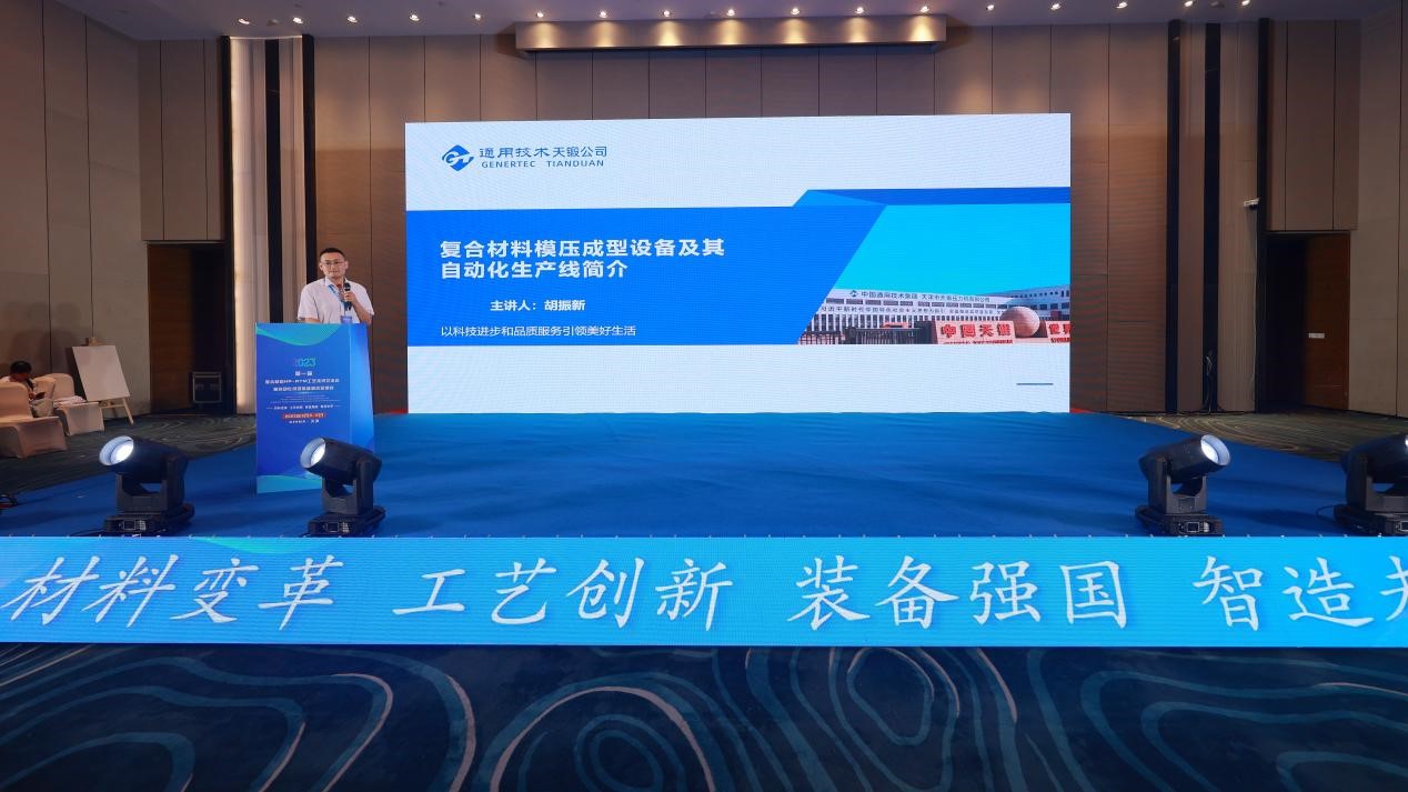 通用技術(shù)機床公司市場管理部總經(jīng)理蘇曉川,天鍛公司黨委副書記、總經(jīng)理劉林志,副總經(jīng)理劉玉民、副總經(jīng)理王世明、行業(yè)專家康連順等領(lǐng)導(dǎo)專家出席會議,天鍛公司設(shè)計院復(fù)合材料所所長胡振新作了題為“復(fù)合材料模壓成型設(shè)備及其自動化生產(chǎn)線簡介”的報告。