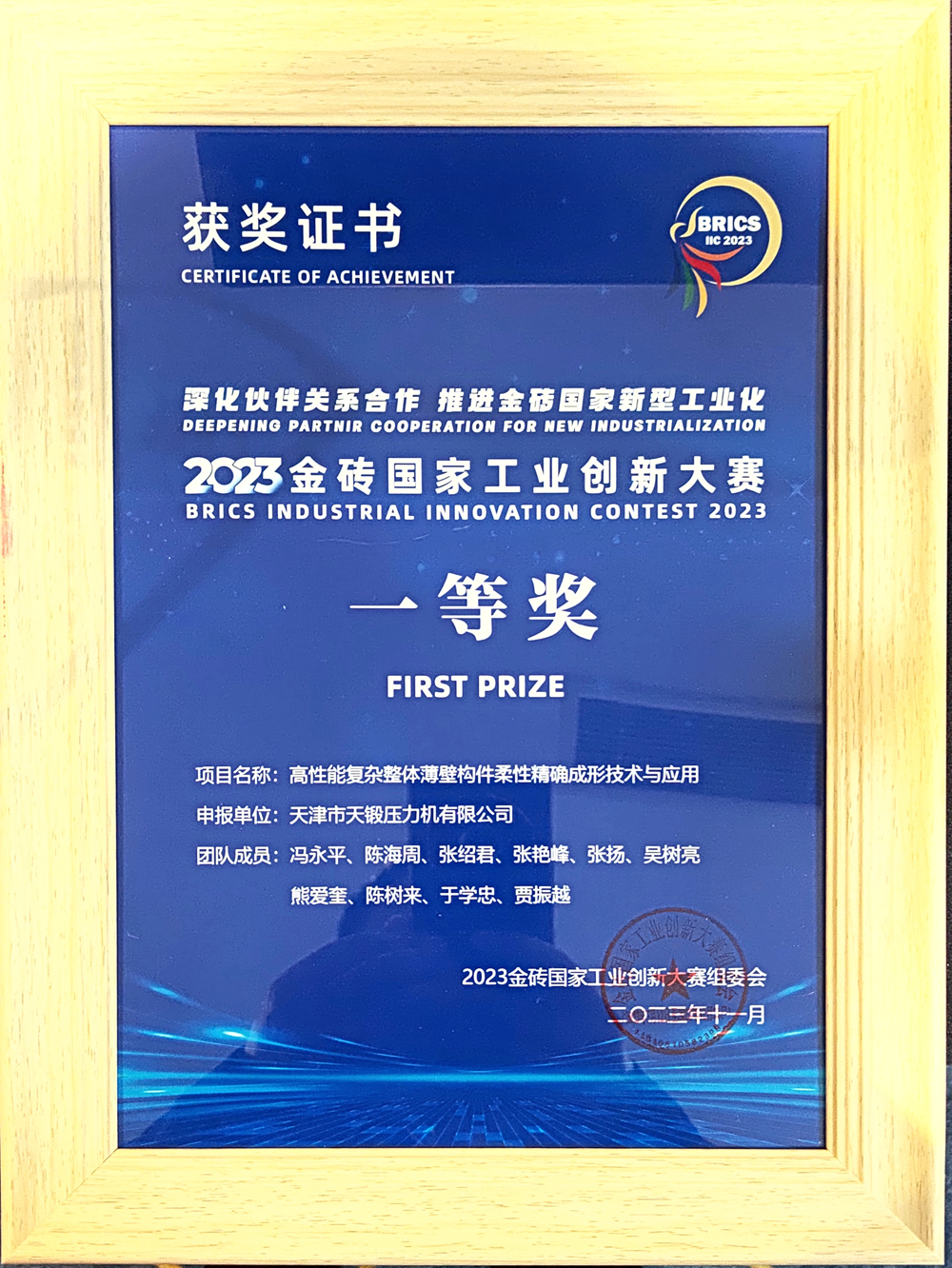 11月16日,在工業(yè)和信息化部、福建省人民政府舉辦的“2023金磚國家工業(yè)創(chuàng)新大賽”中,天鍛公司憑借“高性能復(fù)雜整體薄壁構(gòu)件柔性精確成形技術(shù)與應(yīng)用”項(xiàng)目,在眾多參賽項(xiàng)目中脫穎而出,榮獲“2023金磚國家工業(yè)創(chuàng)新大賽”智能制造領(lǐng)域一等獎。