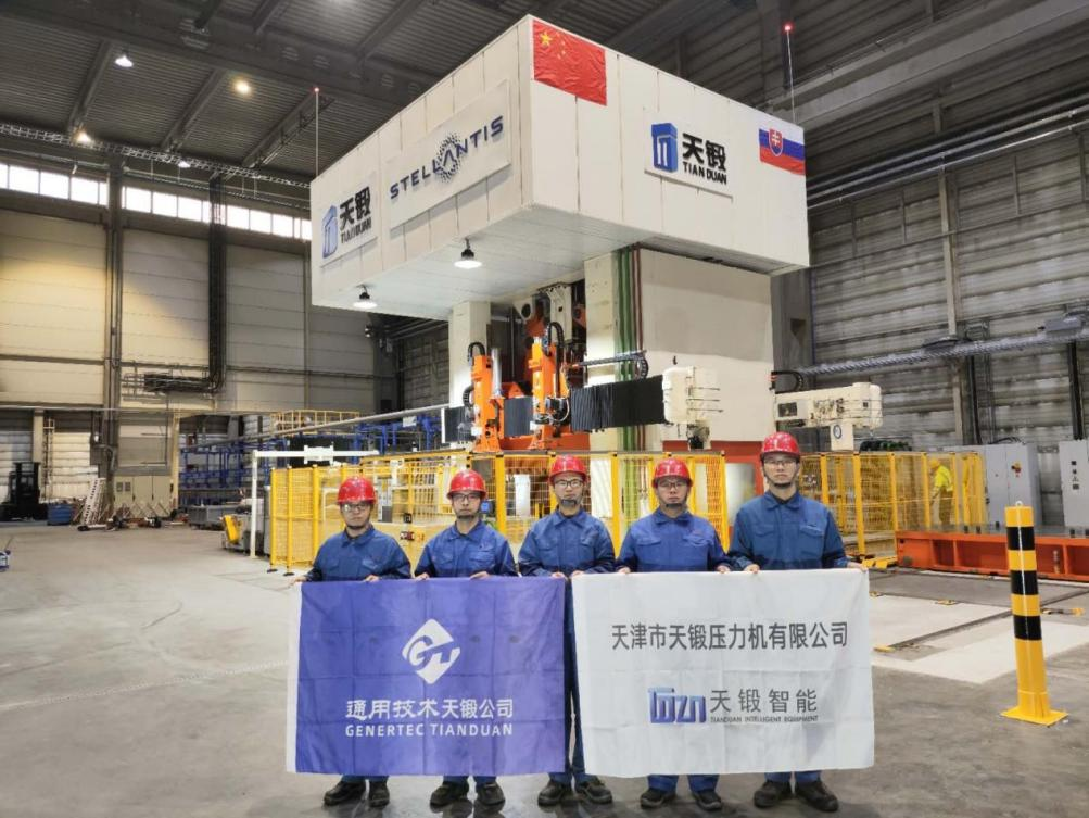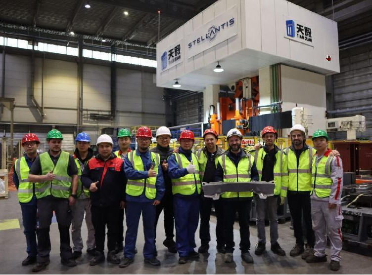 近日,天鍛公司為全球第四大汽車制造商Stellantis集團(tuán)提供的首條12000kN復(fù)合驅(qū)動(dòng)熱成形壓力機(jī)自動(dòng)化生產(chǎn)線在用戶斯洛伐克工廠成功完成安裝調(diào)試,實(shí)現(xiàn)首件生產(chǎn)。這標(biāo)志著該產(chǎn)線已具備生產(chǎn)能力,為客戶下一步批量生產(chǎn)奠定基礎(chǔ)。
