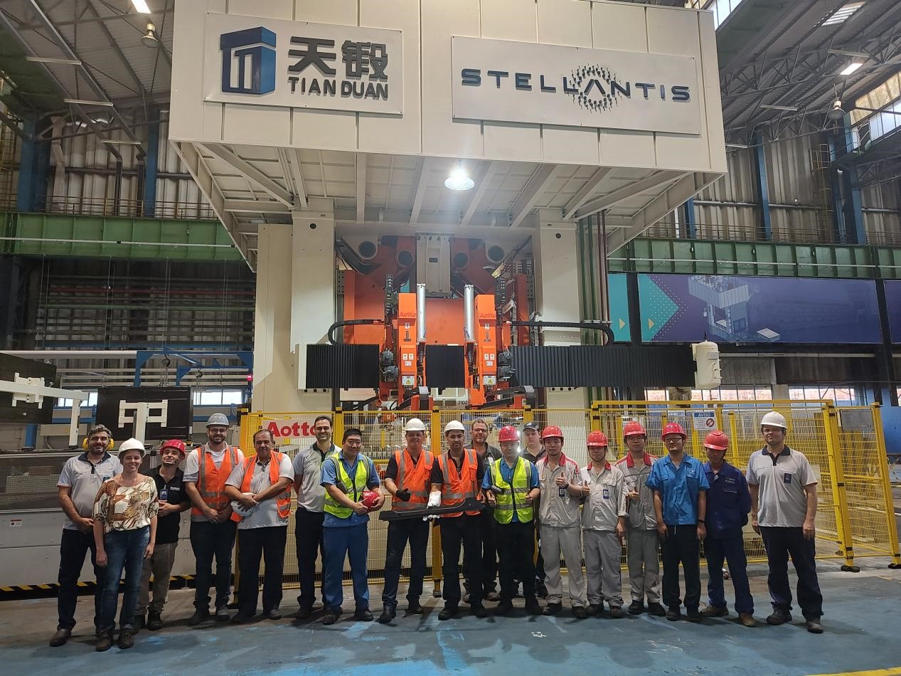 近日,公司為全球第四大汽車制造商Stellantis集團打造的第4條12000kN復合驅動熱成形壓力機自動化生產線在巴西工廠成功完成安裝調試,并順利實現(xiàn)首件試制。