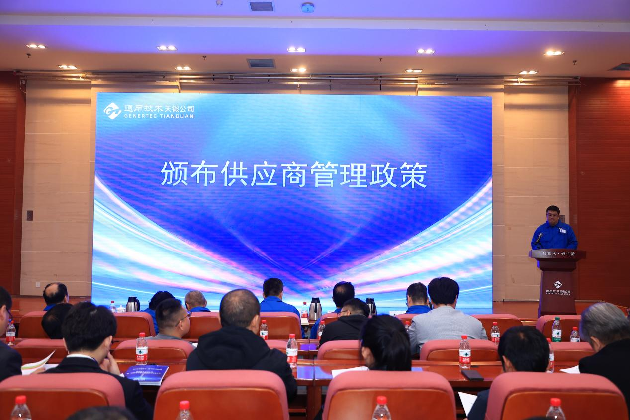 首先,由公司董事長、黨委書記劉國福同志致辭。他代表公司歡迎和感謝各位供應商代表蒞臨大會,介紹了通用技術集團機床產(chǎn)業(yè)的整體情況和天鍛公司的基本情況,闡釋了天鍛公司的發(fā)展規(guī)劃與奮斗目標。希望供應商與天鍛公司“攜手同行,互利共贏”,做到“以誠相待,共赴未來”,實現(xiàn)“優(yōu)質高效,說到做到”,共建“規(guī)范干凈,安全穩(wěn)定”的產(chǎn)業(yè)鏈供應鏈。倡議大家以誠相待,互相賦能,結成能力共同體、資源共同體、利益共同體,齊心協(xié)力建設產(chǎn)業(yè)生態(tài),提升產(chǎn)業(yè)發(fā)展質量。在一起,加油!