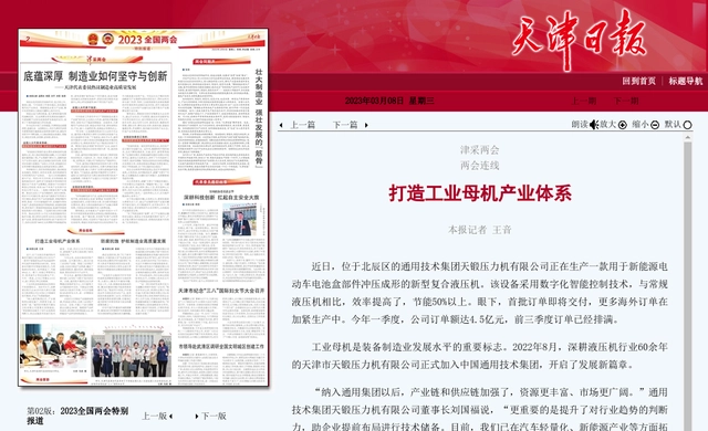 工業(yè)母機(jī)是裝備制造業(yè)發(fā)展水平的重要標(biāo)志。2022年8月,深耕液壓機(jī)行業(yè)60余年的天津市天鍛壓力機(jī)有限公司正式加入中國(guó)通用技術(shù)集團(tuán),開(kāi)啟了發(fā)展新篇章。
