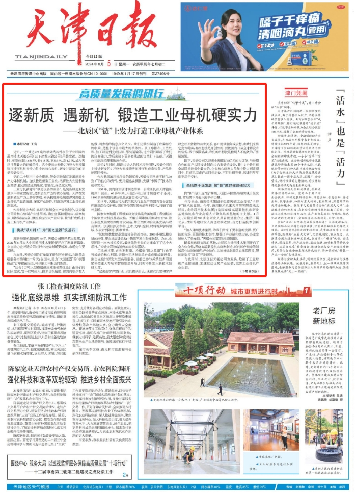 與此同時(shí),北辰區(qū)以天鍛公司為龍頭,繪制了工業(yè)母機(jī)產(chǎn)業(yè)鏈圖譜,加速推動(dòng)優(yōu)勢(shì)產(chǎn)業(yè)延鏈,完善工業(yè)母機(jī)產(chǎn)業(yè)生態(tài)。