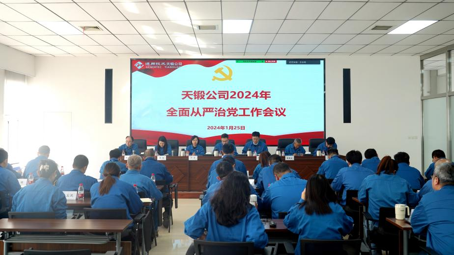 1月25日下午,天鍛公司召開2024年全面從嚴治黨工作會議。會議以習近平新時代中國特色社會主義思想為指導,全面貫徹落實黨的二十大、二十屆二中全會和二十屆中央紀委三次全會精神,學習貫徹習近平總書記關于黨的自我革命的重要思想,落實集團黨組、機床公司黨委全面從嚴治黨工作會議部署,總結2023年全面從嚴治黨工作,部署2024年主要任務,推動公司各基層黨組織深刻認識“兩個確立”的決定性意義,增強“四個意識”、堅定“四個自信”、做到“兩個維護”,把“九個以”的實踐要求貫徹到公司全面從嚴治黨全過程,以自我革命精神縱深推進全面從嚴治黨,為推動公司創(chuàng)建世界一流專業(yè)領軍示范企業(yè)提供堅強政治保障。